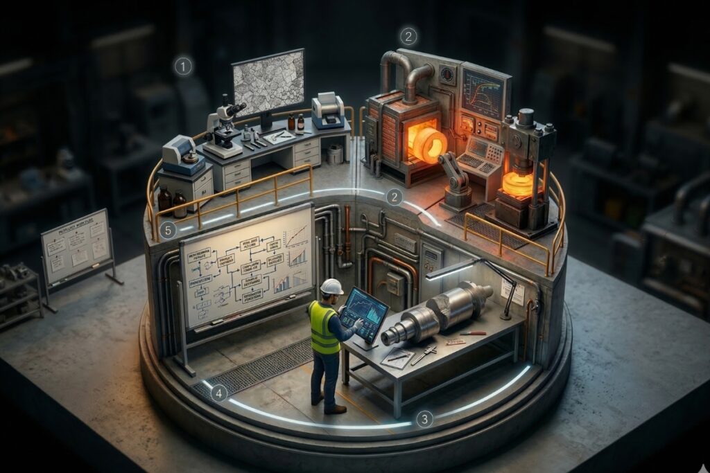 Metals Academy nace de experiencia directa en procesos industriales complejos: forja, tratamientos térmicos y análisis de fallas en aplicaciones críticas.